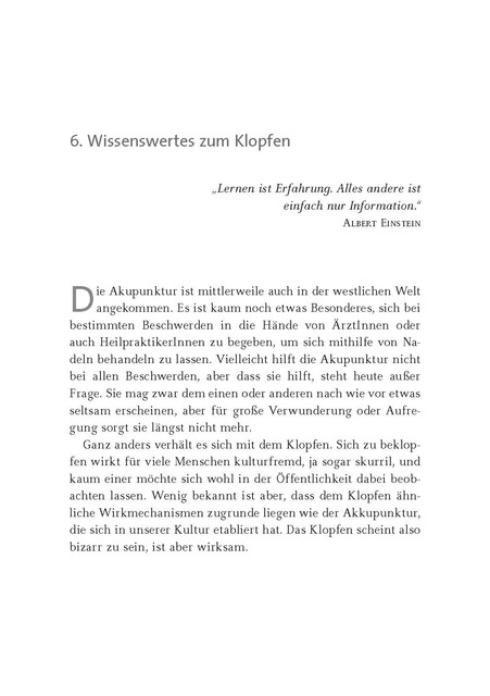 »Mit den Klopftechniken der Energetischen Psychologie zeigen sich Ihnen ganz neue Wege, schnell und situationsbezogen auf stressvolle Momente im Pflegealltag zu reagieren.« (PflegeLeben, 01/2018)
