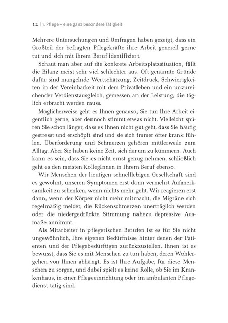 »Das praktisch angelegte Buch richtet sich an Mitarbeiter*innen mit hohem Stresslevel in pflegerischen Berufen, die ihren Berufsalltag ändern wollen.« (impu!se, Dez. 2017)
