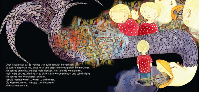 Tabea ist sieben Jahre alt, als sie mit ihrer Familie in eine andere Stadt zieht. Am ersten Schultag soll sie sich der neuen Klasse vorstellen. Doch wie aus dem Nichts ist plötzlich Tabulu da. Es sitzt auf Tabe
