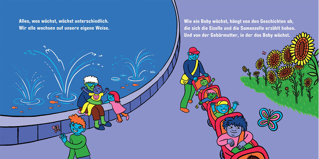 »›Wie entsteht ein Baby?‹ zeigt, dass auf die vermeintlich große Frage ›Wie bin ich entstanden?‹ eine ganz einfache Antwort möglich ist. Und zwar sogar eine Antwort, die für alle Kinder richtig ist, und die auch Erwachsenen einen vielfältigen und queeren Blick auf die Welt geben kann.« (Marianne Hamm, Rosige Zeiten, März 2023)